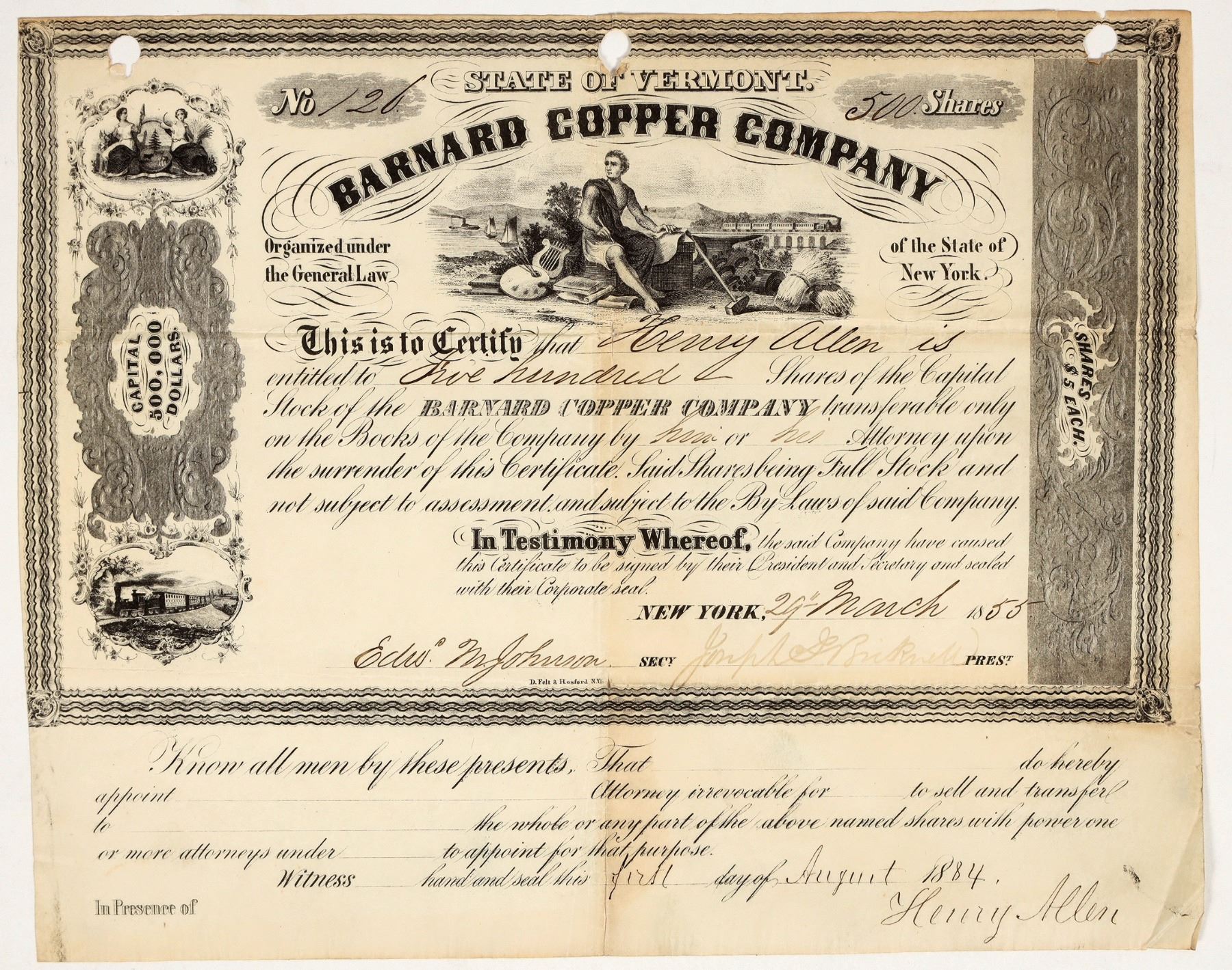 Capital $500,000 in shares of $5.