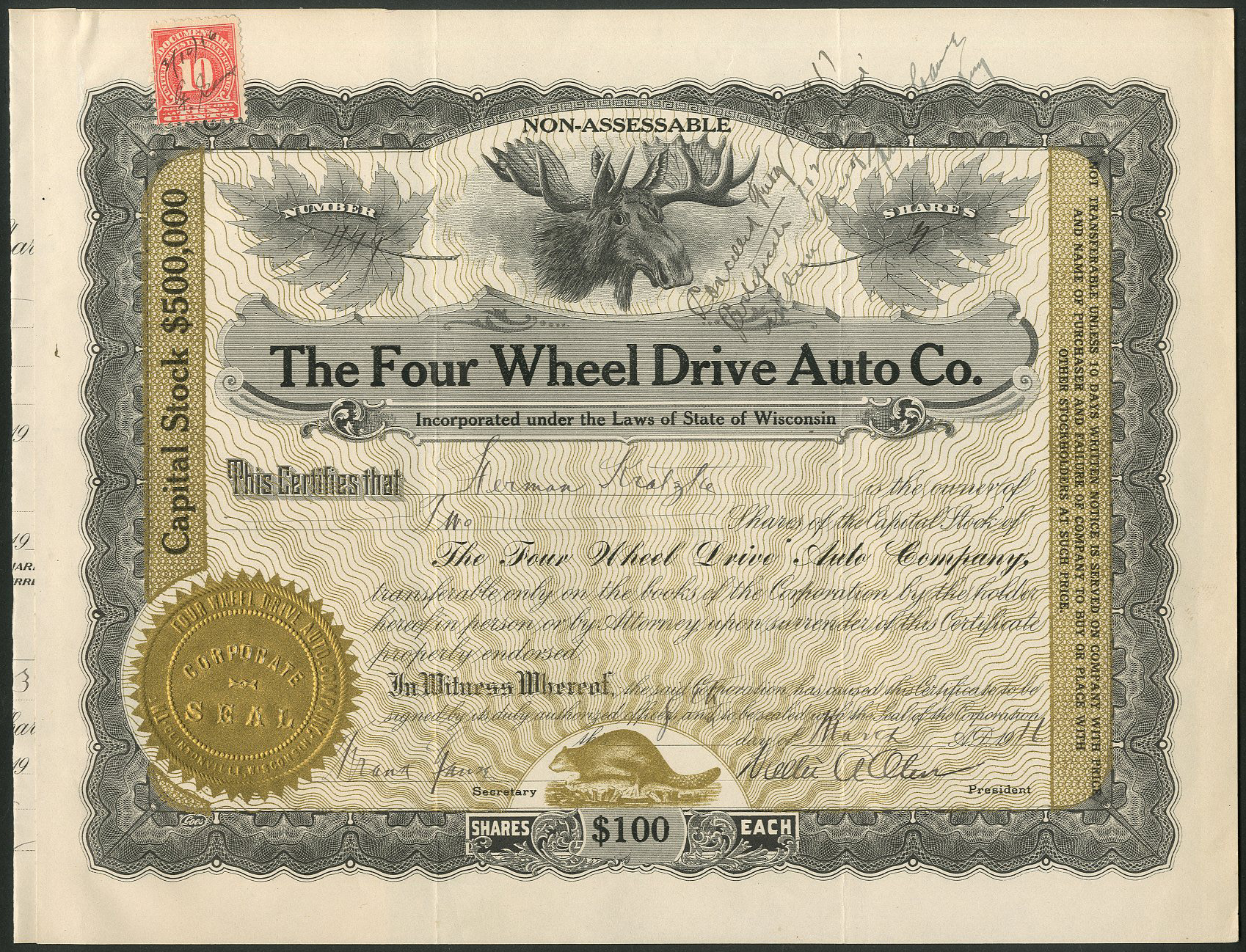 incorporated in Wisconsin in 1909 as Badger Four-Wheel Drive Auto Company. Name changed in 1911. Developed all wheel drive vehicles in a factory in Wisconsin.